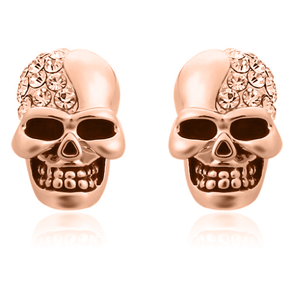 Skull Stud oorbellen uitgevoerd in rosé van Mendes Jewelry. De oorknoppen zijn vervaardigd uit hoogwaardig roségoud verguld edelstaal met diverse glimmende kristallen. De schedel oorbellen hebben een afmeting van 14 x 9mm. De Stud oorbel is voorzien van een pin en sluit d.m.v een losse stekker aan de achterzijde waardoor de oorbel stevig vast zit. Deze prachtige oorknoppen worden per set geleverd in cadeauverpakking.