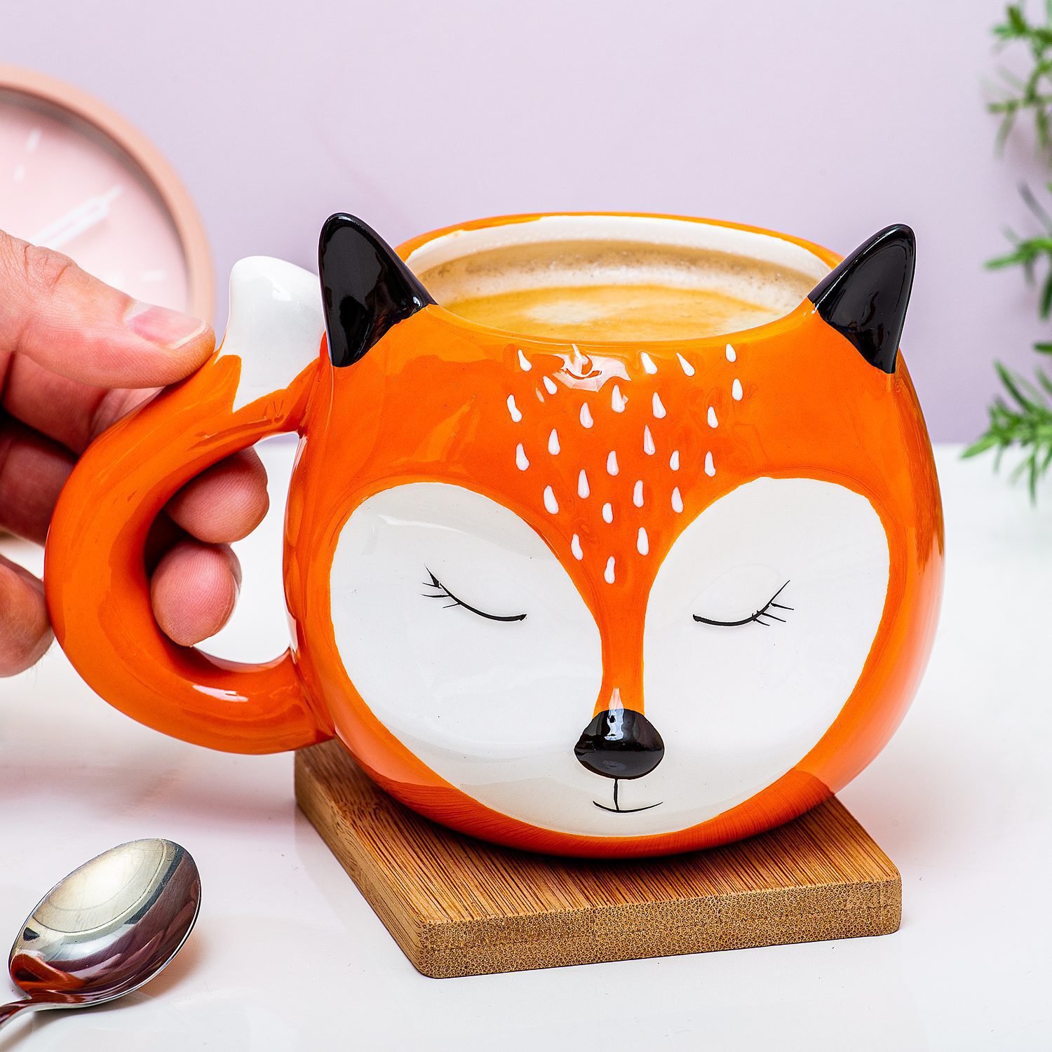 Slapende vos mok van Winkee. Een beker in de vorm van het gezicht van een vos die slaapt. De oranje vos heeft gesloten ogen en zwarte oortjes. Haar staart vormt het oor van de mok. Deze beker is het perfecte cadeautje voor een dierenvriend. Hij is gemaakt van keramiek. Afmeting: 15 x 12 x 11 centimeter.