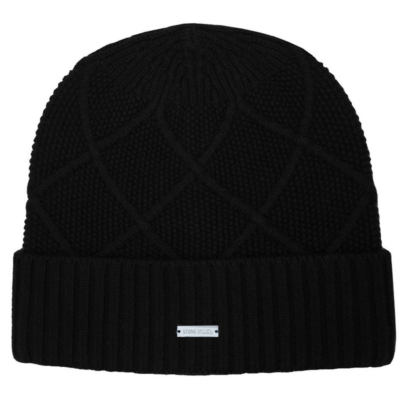 Blijf warm en stijlvol tijdens koude dagen met deze Stone Valley Zwarte Gebreide Muts. De muts is gemaakt van hoogwaardige Australische wol en heeft een grote pasvorm voor comfortabel dragen. Het gebreide patroon met ruiten geeft deze muts een klassieke en tijdloze uitstraling. De geribbelde omslagrand zorgt voor extra warmte en bescherming tegen de koude wind. De muts is afgewerkt met een zilverkleurig Stone Valley label in het midden van de omslagrand.