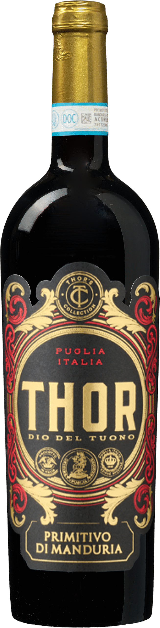 Thor dondert door! De God van de Donder zorgt ook in de 100% Primitivo voor een donders mooie wijn. Niet zomaar Primitivo, nee! Uit Manduria, het ‘Grand Cru’-gebied voor deze zwoele druif. Daar komen Puglia’s beste Primitivo’s vandaan. Die hebben iets extra’s. Naast zondoorstoofde, dikke, rijpe kracht óók een fijne, zachte en elegante kant. Waardoor je van deze godendrank blijft nippen!