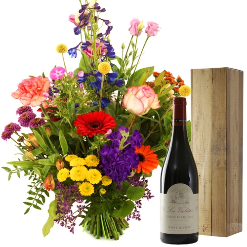 Een populair Vaderdag Plukboeket met een heerlijke fles Franse rode wijn van de kleinere wijn boer. Samen bezorgd voor Vaderdag, bestel op tijd ! Thuiswinkel Lid.