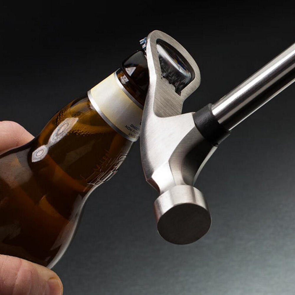 Uiteraard weet iedereen wat je met een hamer moet doen. Maar deze hamer kan meer! Wie heeft er na een dag zware arbeid geen zin in een verkoelend biertje? Dus waarom combineer je die 2 dingen dan niet? Deze Vrijdag Middag Hamer is tegelijkertijd een flessenopener. Nu kun jij deze hamer elke vrijdagmiddag gebruiken (of iedere andere dag) om zowel te hameren als te drinken! Verras jouw collega's of geef het cadeau aan een klusser of aan iemand die verhuisd is en gaat verbouwen. Deze hamer is onmisbaar bij iedereen die van handige gadgets houdt én van een lekker drankje 😉