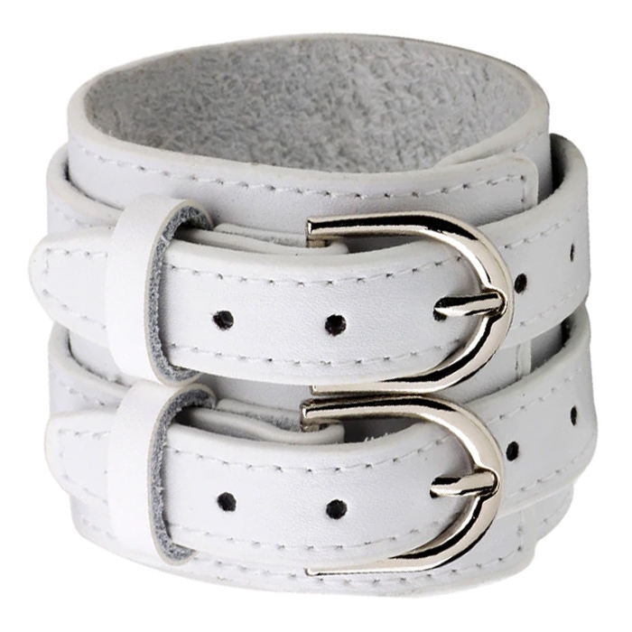 Heren armband vervaardigd uit echt leder in de kleur wit. Deze prachtige witte leren armband is 5cm breed en heeft een verstelbare gesp sluiting. De armband is verstelbaar in vijf verschillende maten namelijk 20, 21, 22, 23 en 24cm.