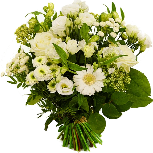 Paasbloemen in het wit, een mooi frivol boeket witte bloemen voor de pasen. Bestellen gaat eenvoudig >> Thuiswinkel lid.