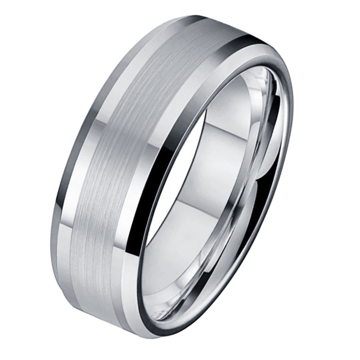 Wolfraam heren ring uitgevoerd met een glans en mat afwerking. Prachtige ring voor mannen uit de Mendes Collectie By LGT. De ring is afgewerkt met een Brushed oppervlakte en een gepolijst randje. De Tungsten herenring is 8mm breed en weegt 20 gram. Wolfraam ook wel Tungsten genoemd is harder en zwaarder dan welk metaal ook, het is 5x zo hard als staal en 10x zo hard als goud. Wolfraam is dus een speciaal metaal die door de hardheid minder snel krassen bevat en langer mooi blijft dan andere metalen.