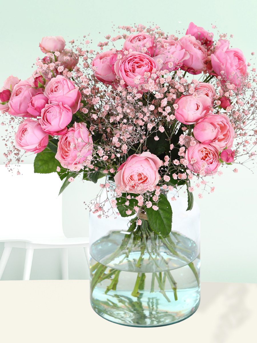 De trosrozen (https://www.surprose.nl/specials/trosrozen)in dit boeket zijn van de soort Silva Roses en worden door Dümmen Orange in Nederland gekweekt. Dit boeket wordt door onze bloemisten met de hand gebonden en bestaat uit 5 stelen trosrozen met meerdere rozenknoppen per steel en roze gipskruid. Dit alles wordt losjes bij elkaar gebonden in de juiste verhoudingen, wat zich uit in een bijzonder en groot boeket. De zachtroze kleur in dit boeket zorgt er voor dat dit trosrozen boeket voor iedere gelegenheid een prachtig geschenk is. Een zelfde soort boeket hebben wij ook in een boeket met hardroze trosrozen. () Benieuwd naar al onze trosrozen? Kijk dan even bij onze categorie ‘trosrozen ()’ en laat je verrassen door ons ruime assortiment. Al onze boeketten worden in onze luxe verzendverpakking geleverd. Deze verpakking voorkomt dat de rozen beschadigen tijdens vervoer. Ook wordt er een freshbag aan de onderkant van de stelen toegevoegd om deze trosrozen tijdens vervoer vers te houden. In de verzenddoos wordt ook nog rozenvoeding en een gratis kaartje mee verpakt. Op dit kaartje kan een persoonlijke wenstekst geschreven worden in het daarvoor bestemde vak.