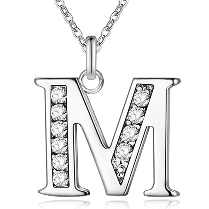 Deze zilverkleurige letter M ketting met zirkonia steentjes voor dames is uitgevoerd in een verzilverde metaallegering. De hanger hangt aan een fijne zilverkleurige schakelketting en heeft een afmeting van 12 x 8 mm. De schakelketting heeft een lengte van 46 cm en is niet verstelbaar. Deze letterketting weegt 4 gram.