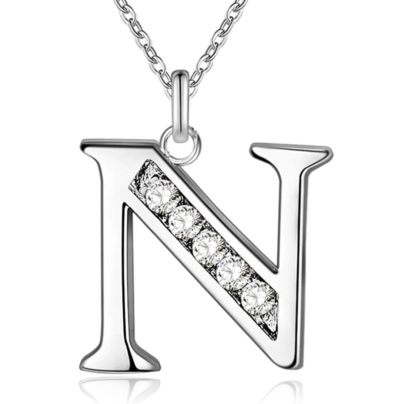 Deze zilverkleurige letter N ketting met zirkonia steentjes voor dames is uitgevoerd in een verzilverde metaallegering. De hanger hangt aan een fijne zilverkleurige schakelketting en heeft een afmeting van 12 x 8 mm. De schakelketting heeft een lengte van 46 cm en is niet verstelbaar. Deze letterketting weegt 4 gram.