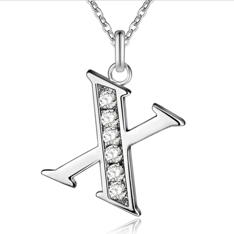 Deze zilverkleurige letter X ketting met zirkonia steentjes voor dames is uitgevoerd in een verzilverde metaallegering. De hanger hangt aan een fijne zilverkleurige schakelketting en heeft een afmeting van 12 x 8 mm. De schakelketting heeft een lengte van 46 cm en is niet verstelbaar. Deze letterketting weegt 4 gram.