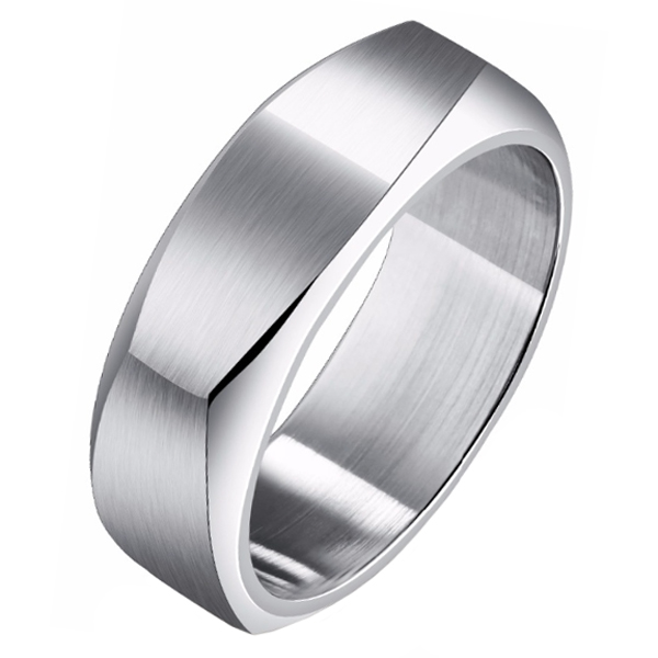 Schitterend afgewerkte hoekige heren ring met vier vlakken van Mendes Jewelry. De ring is vervaardigd uit gepolijst edelstaal met een glans en mat afwerking. De ring is 8mm breed en weegt 9 gram. Ringen van edelstaal hebben geen onderhoud nodig en blijven lang mooi doordat het een hard en roestvrij metaal is.