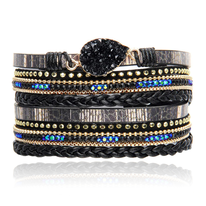 In het midden pronkt een mooie steen die de armband een extra touch boho geeft.